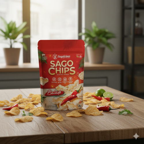 Sagolicious Sago Chip Balado: Pedasnya dapet, sehatnya juga dapet! Order sekarang dan nikmati kerenyahan camilan lokal dengan cita rasa balado yang nendang!